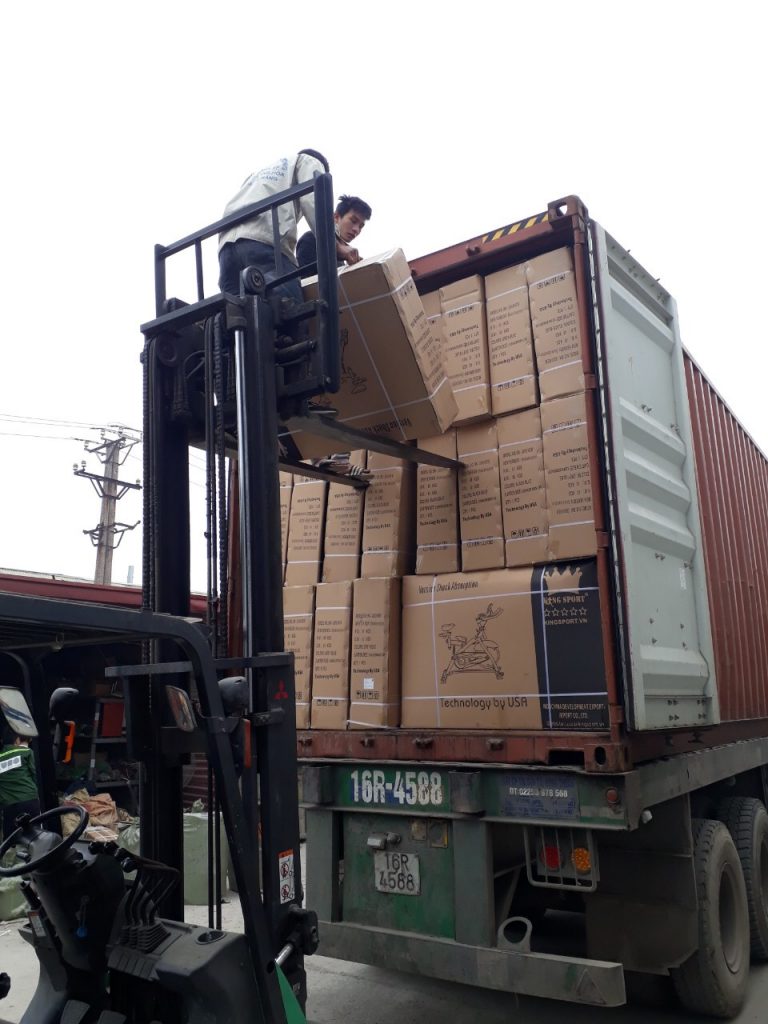 Rút hàng từ container bằng thủ công hoặc xe nâng chuyên dụng.