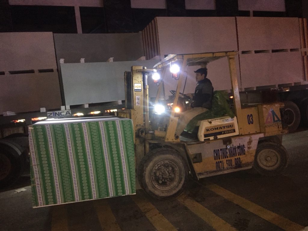 | Thiết bị | Trang bị đầy đủ xe nâng, xe đẩy, dây đai, máy móc hỗ trợ hiện đại. |